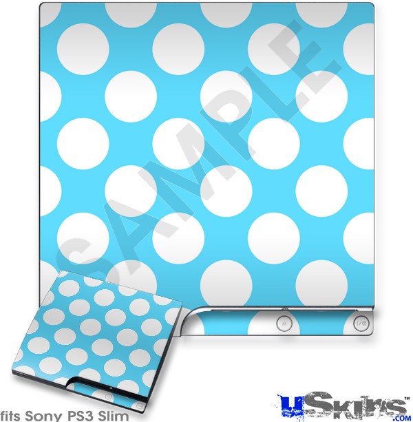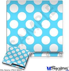Decal Skin compatible with Sony PS3 Slim Kearas Polka Dots White And Blue