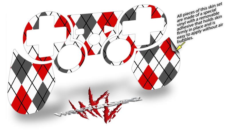 Sony PS3 Controller Decal Style Skin - Argyle Red and Gray (CONTROLLER NOT INCLUDED)