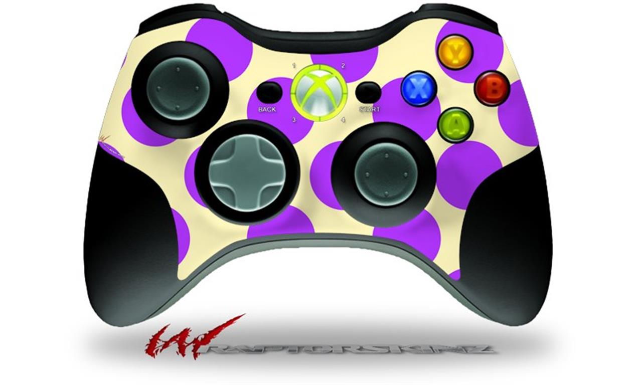 XBOX 360 Wireless Controller Decal Style Skin - Kearas Polka Dots Purple On Cream (CONTROLLER NOT INCLUDED)