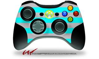 XBOX 360 Wireless Controller Decal Style Skin - Psycho Stripes Neon Teal and Gray (CONTROLLER NOT INCLUDED)
