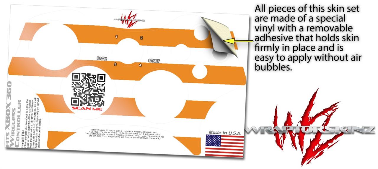 XBOX 360 Wireless Controller Decal Style Skin - Psycho Stripes Orange and White (CONTROLLER NOT INCLUDED)