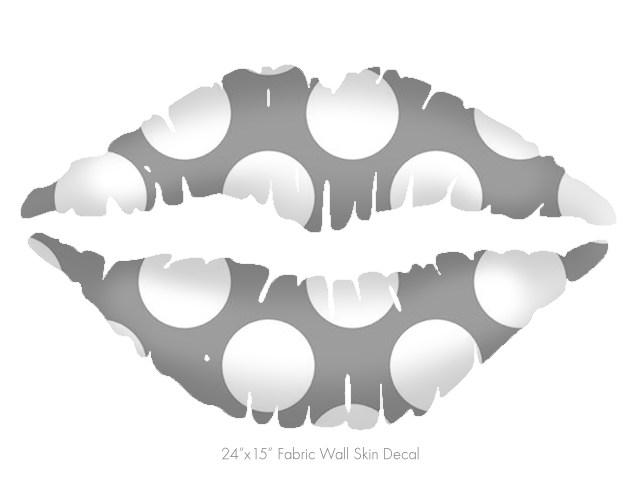 Kearas Polka Dots Whtie On Gray - Kissing Lips Fabric Wall Skin Decal measures 24x15 inches