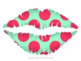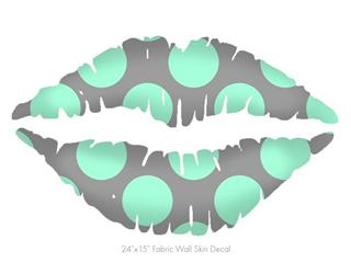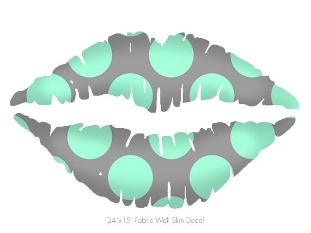 Kearas Polka Dots Mint And Gray - Kissing Lips Fabric Wall Skin Decal measures 24x15 inches