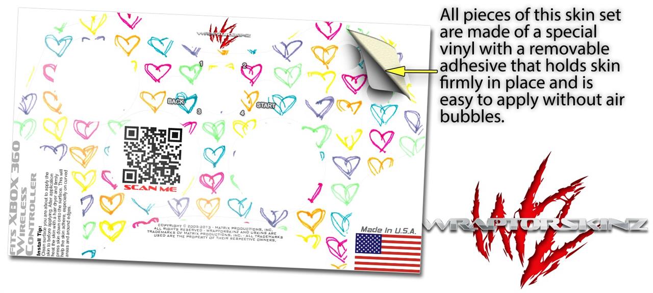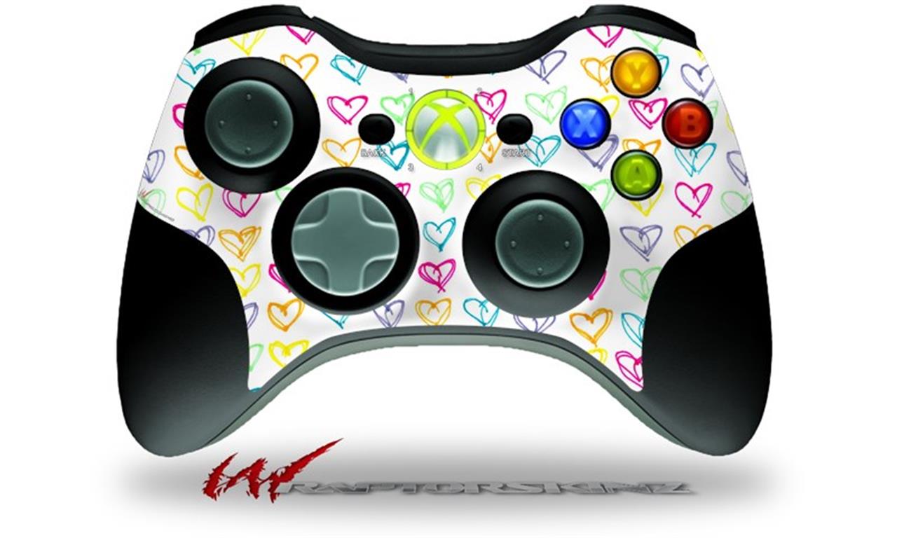 XBOX 360 Wireless Controller Decal Style Skin - Kearas Hearts White (CONTROLLER NOT INCLUDED)