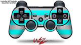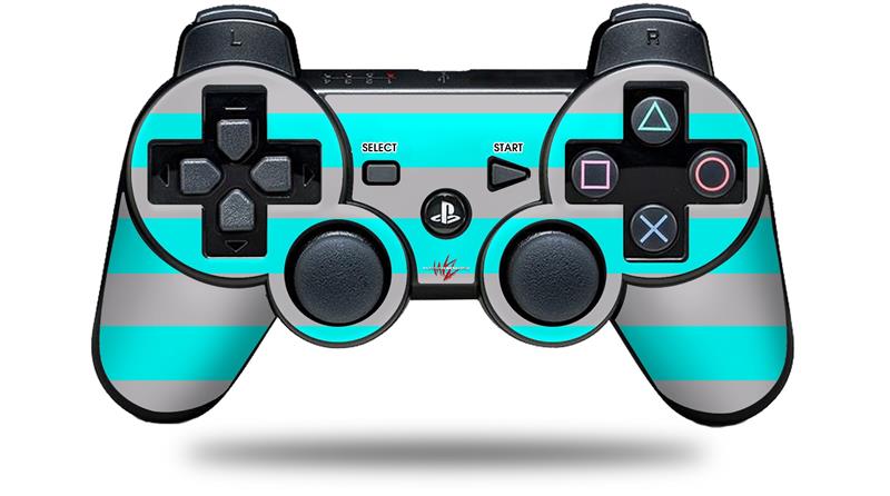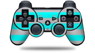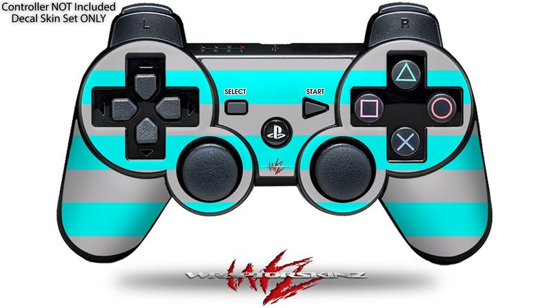 Sony PS3 Controller Decal Style Skin - Psycho Stripes Neon Teal and Gray (CONTROLLER NOT INCLUDED)