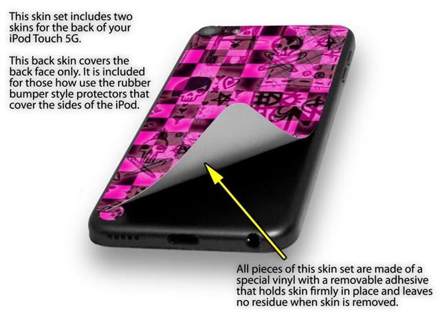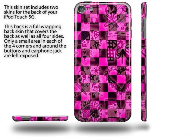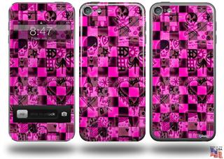 Pink Checkerboard Sketches Decal Style Vinyl Skin - fits Apple iPod Touch 5G (IPOD NOT INCLUDED)