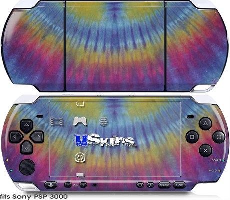Sony PSP 3000 Skin - Tie Dye Blue and Yellow Stripes