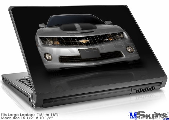 Laptop Skin (Large) - 2010 Chevy Camaro Silver - Black Stripes on Black