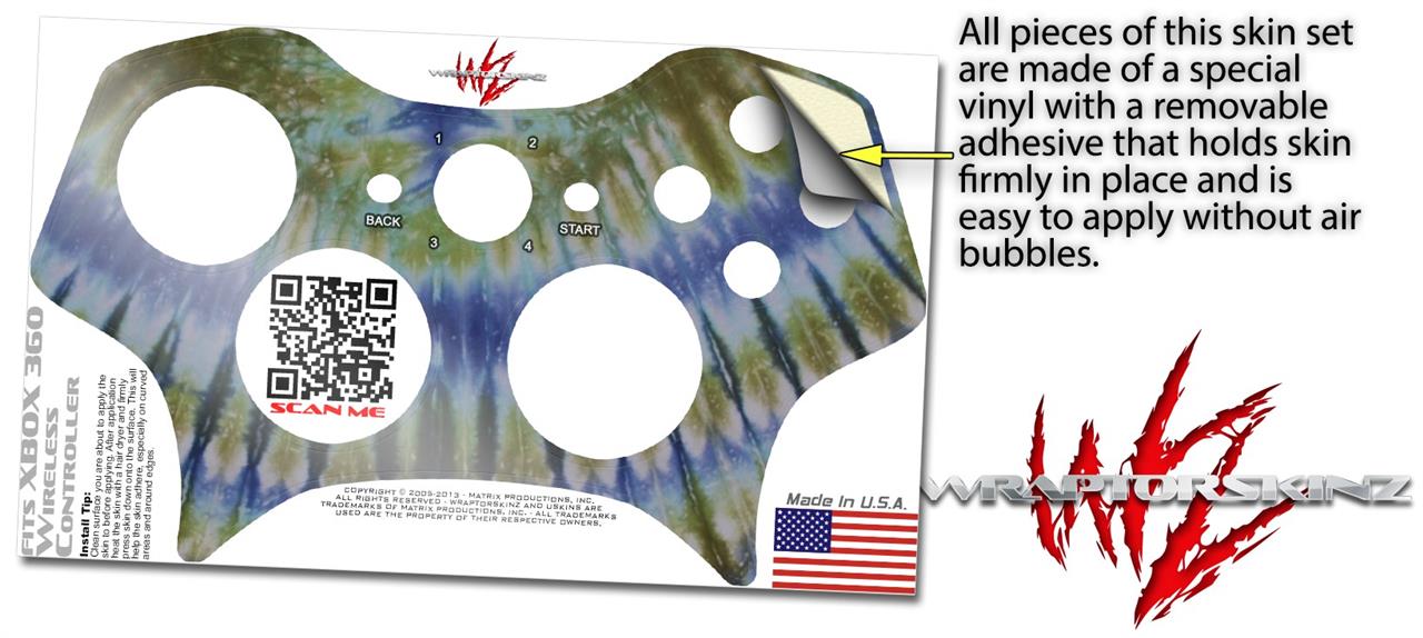 XBOX 360 Wireless Controller Decal Style Skin - Tie Dye Green Stripes (CONTROLLER NOT INCLUDED)