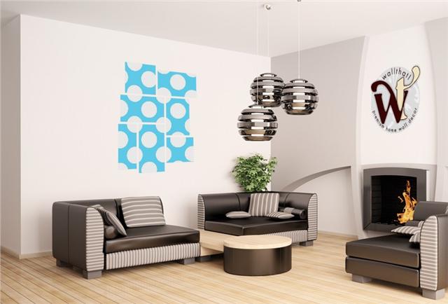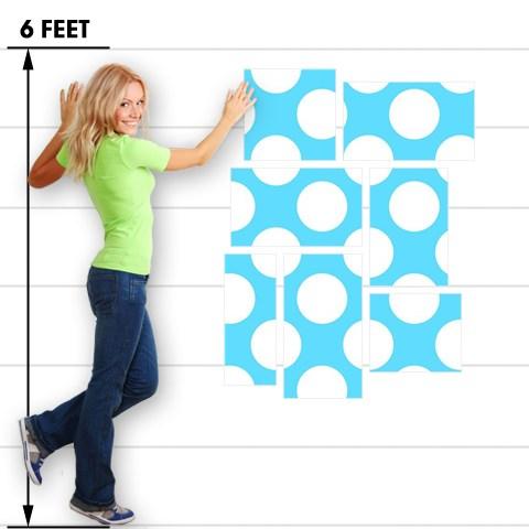 Kearas Polka Dots White And Blue - 7 Piece Fabric Peel and Stick Wall Skin Art (50x38 inches)