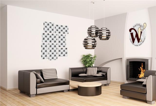 Kearas Daisies Black on White - 7 Piece Fabric Peel and Stick Wall Skin Art (50x38 inches)