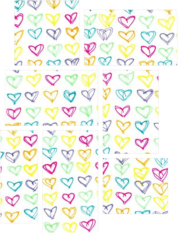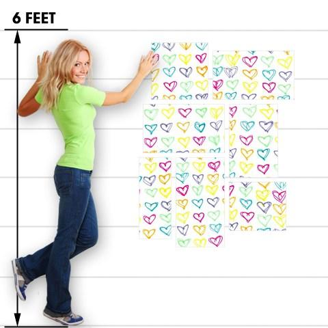 Kearas Hearts White - 7 Piece Fabric Peel and Stick Wall Skin Art (50x38 inches)