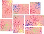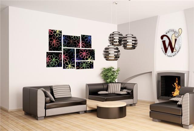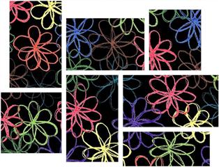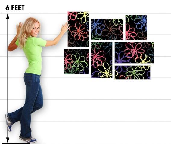 Kearas Flowers on Black - 7 Piece Fabric Peel and Stick Wall Skin Art (50x38 inches)