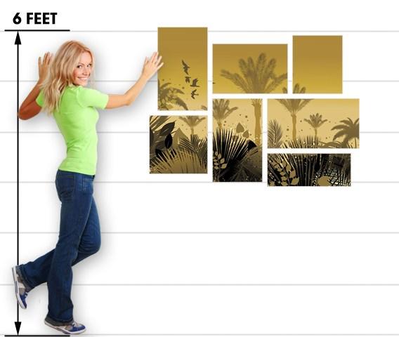 Summer Palm Trees - 7 Piece Fabric Peel and Stick Wall Skin Art (50x38 inches)