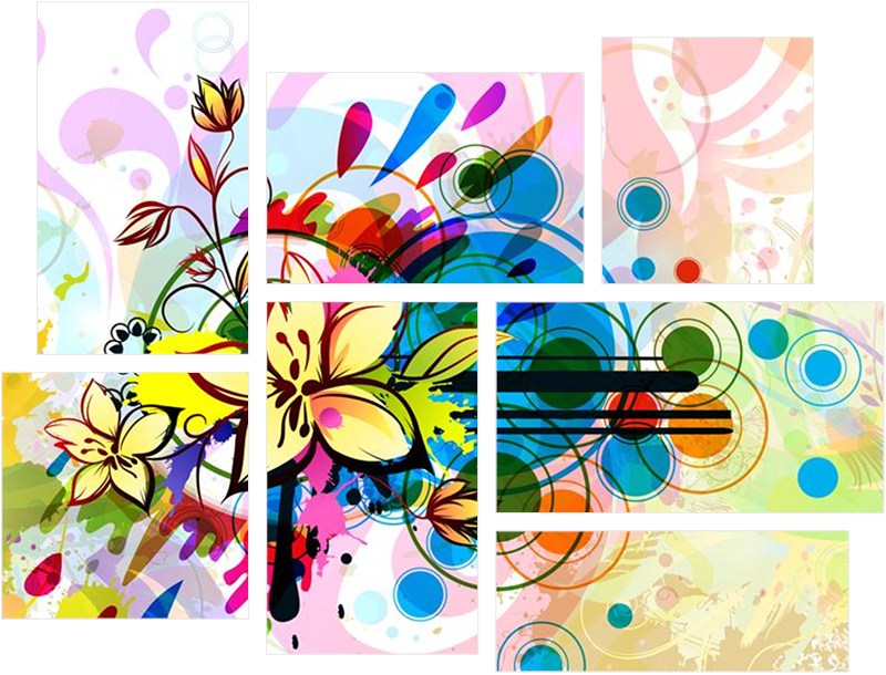 Floral Splash - 7 Piece Fabric Peel and Stick Wall Skin Art (50x38 inches)