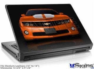 Laptop Skin (Medium) - 2010 Chevy Camaro Orange - White Stripes on Black
