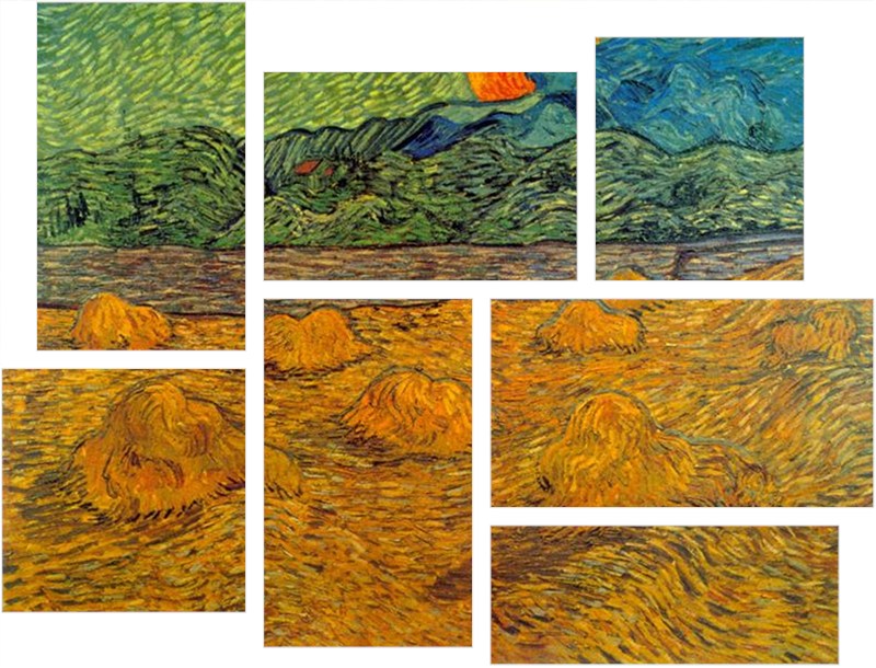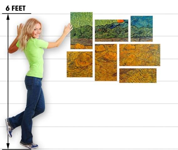 Vincent Van Gogh Rising Moon - 7 Piece Fabric Peel and Stick Wall Skin Art (50x38 inches)