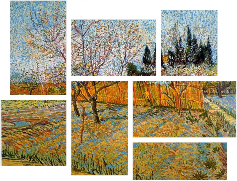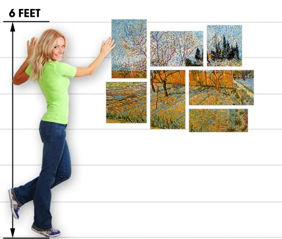 Vincent Van Gogh Peach Trees - 7 Piece Fabric Peel and Stick Wall Skin Art (50x38 inches)