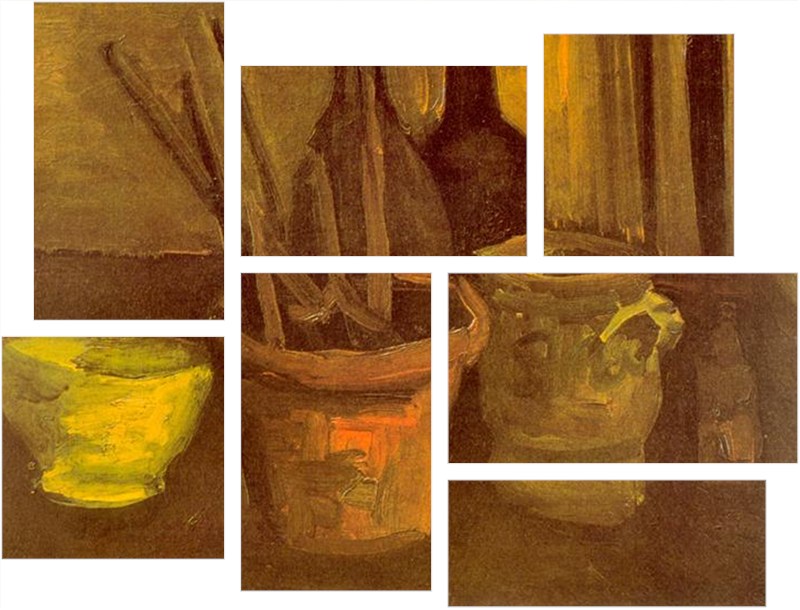 Vincent Van Gogh Paintbrushes - 7 Piece Fabric Peel and Stick Wall Skin Art (50x38 inches)