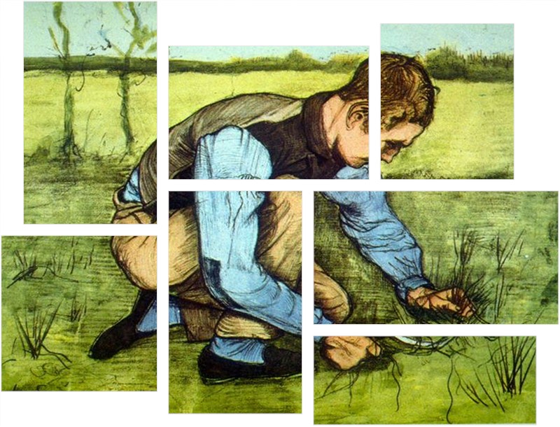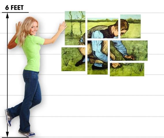 Vincent Van Gogh Cutting Grass - 7 Piece Fabric Peel and Stick Wall Skin Art (50x38 inches)