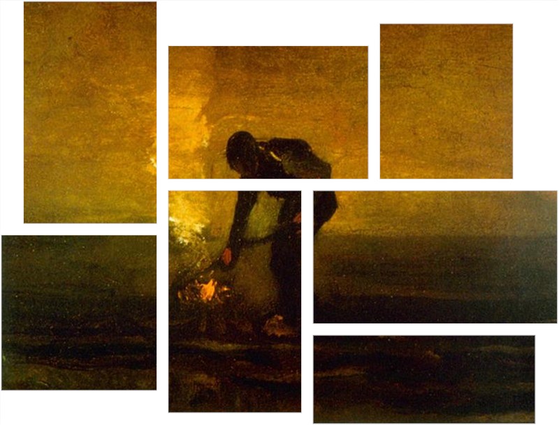 Vincent Van Gogh Burning Weeds - 7 Piece Fabric Peel and Stick Wall Skin Art (50x38 inches)