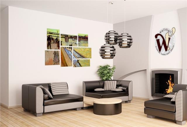 Vincent Van Gogh Bridge - 7 Piece Fabric Peel and Stick Wall Skin Art (50x38 inches)