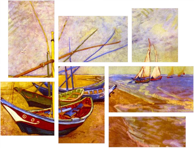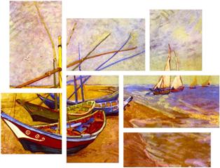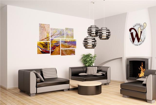 Vincent Van Gogh Boats Of Saintes-Maries - 7 Piece Fabric Peel and Stick Wall Skin Art (50x38 inches)