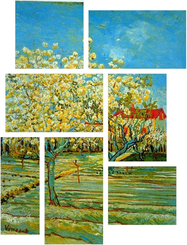 Vincent Van Gogh Orchard - 7 Piece Fabric Peel and Stick Wall Skin Art (50x38 inches)