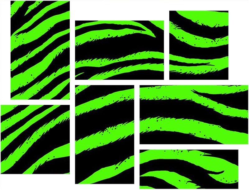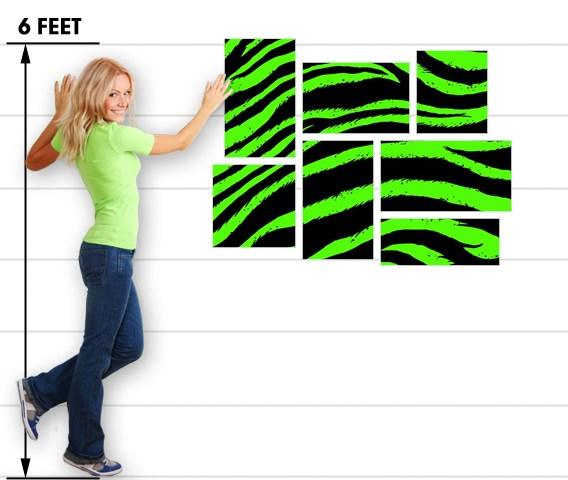 Zebra Green - 7 Piece Fabric Peel and Stick Wall Skin Art (50x38 inches)