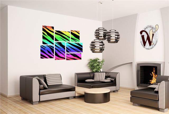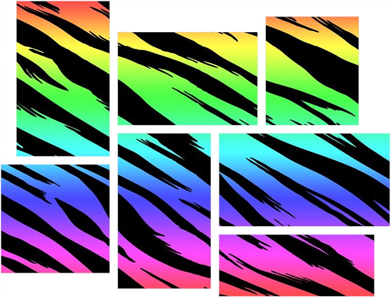 Tiger Rainbow - 7 Piece Fabric Peel and Stick Wall Skin Art (50x38 inches)
