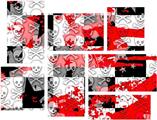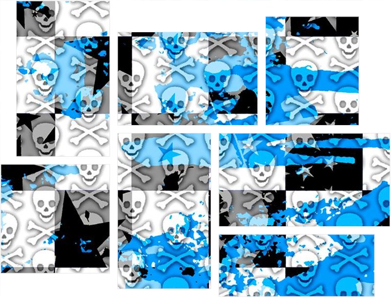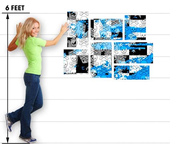 Checker Skull Splatter Blue - 7 Piece Fabric Peel and Stick Wall Skin Art (50x38 inches)