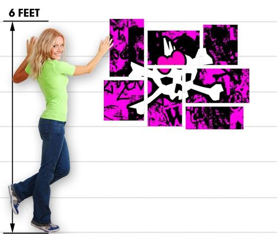 Punk Skull Princess - 7 Piece Fabric Peel and Stick Wall Skin Art (50x38 inches)