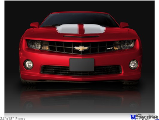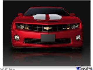 Poster 24"x18" - 2010 Chevy Camaro Jeweled Red - White Stripes on Black