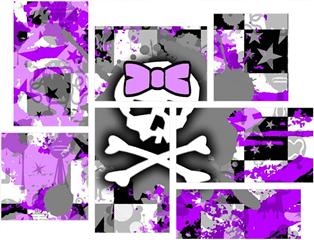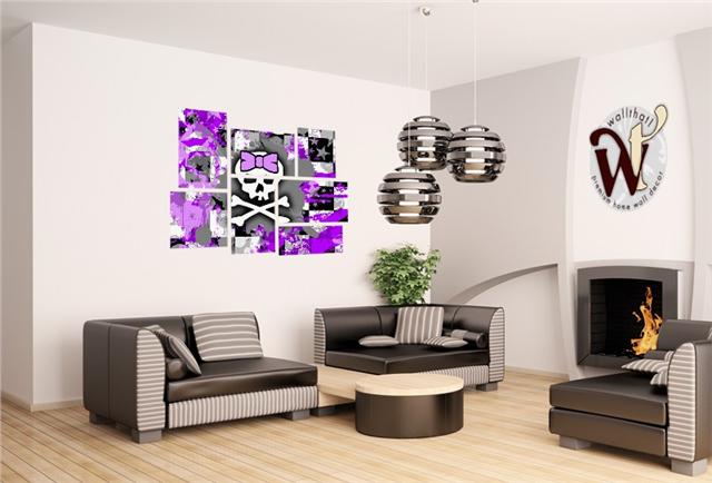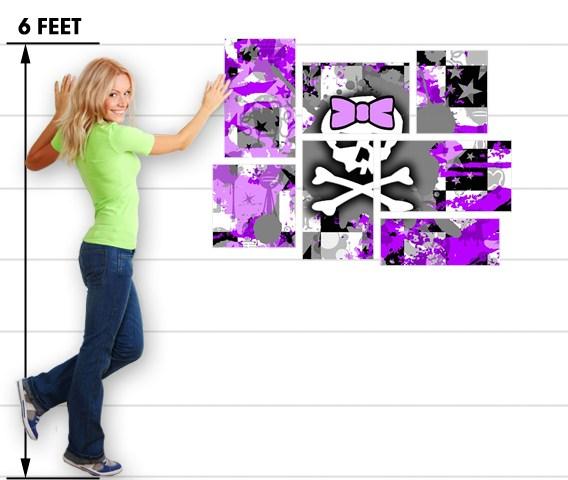 Purple Princess Skull - 7 Piece Fabric Peel and Stick Wall Skin Art (50x38 inches)