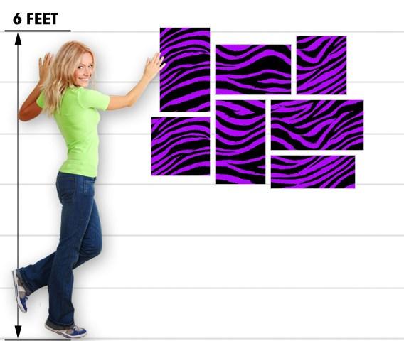Purple Zebra - 7 Piece Fabric Peel and Stick Wall Skin Art (50x38 inches)