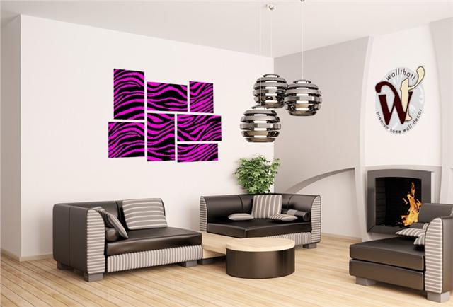 Pink Zebra - 7 Piece Fabric Peel and Stick Wall Skin Art (50x38 inches)