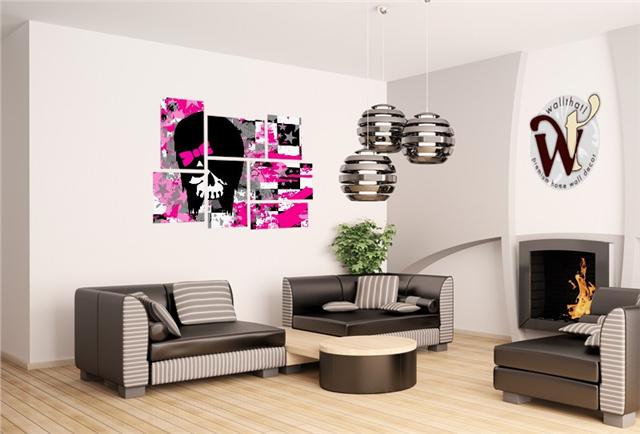 Scene Girl Skull - 7 Piece Fabric Peel and Stick Wall Skin Art (50x38 inches)