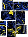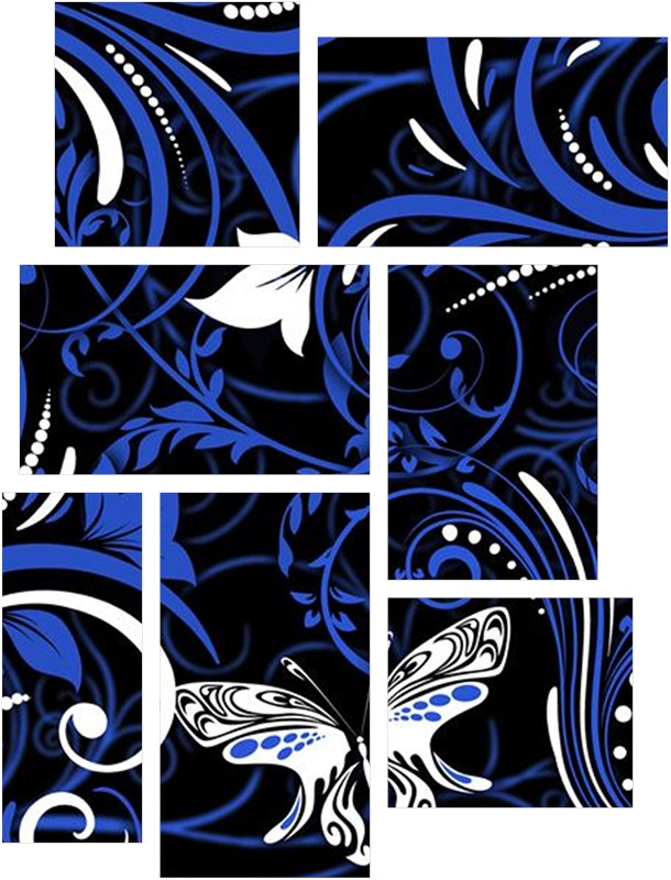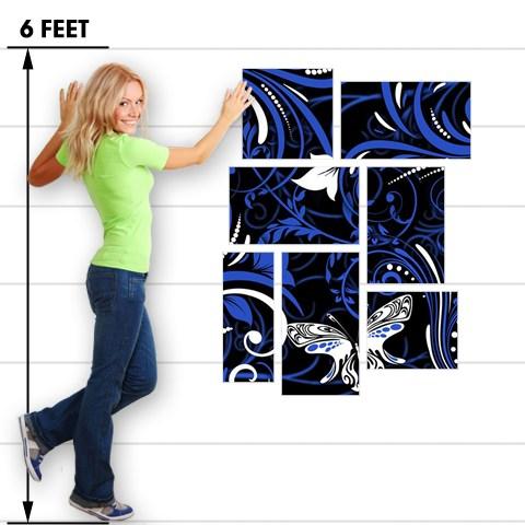 Twisted Garden Blue and White - 7 Piece Fabric Peel and Stick Wall Skin Art (50x38 inches)