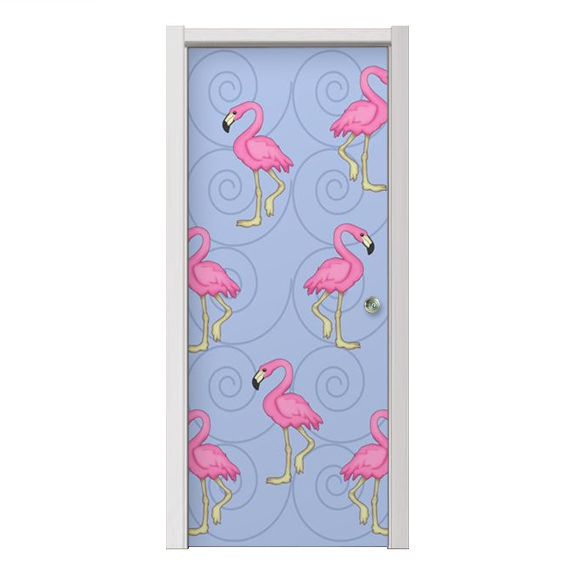 Flamingos on Blue Door Skin (fits doors up to 34x84 inches)