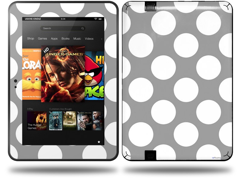 Kearas Polka Dots Whtie On Gray Decal Style Skin fits Amazon Kindle Fire HD 8.9 inch