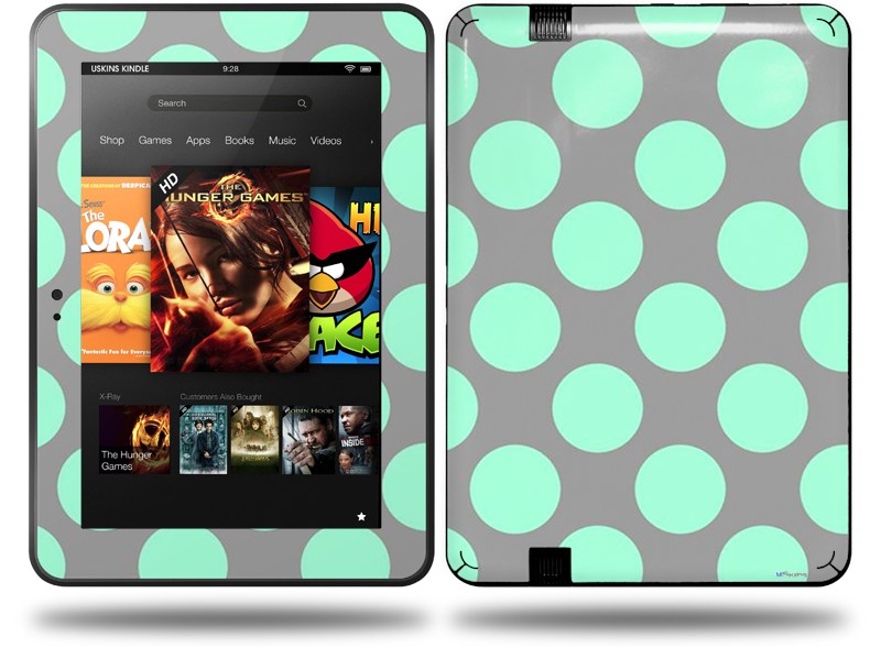 Kearas Polka Dots Mint And Gray Decal Style Skin fits Amazon Kindle Fire HD 8.9 inch