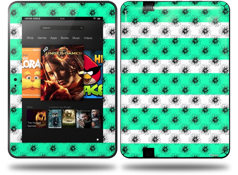 Kearas Daisies Stripe Sea Foam Decal Style Skin fits Amazon Kindle Fire HD 8.9 inch