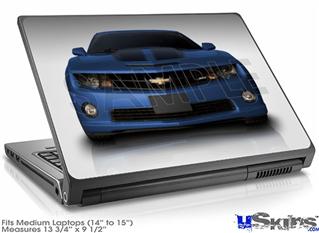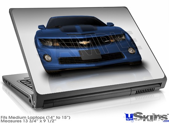Laptop Skin (Medium) - 2010 Chevy Camaro Aqua - Black Stripes