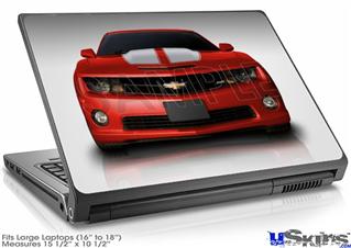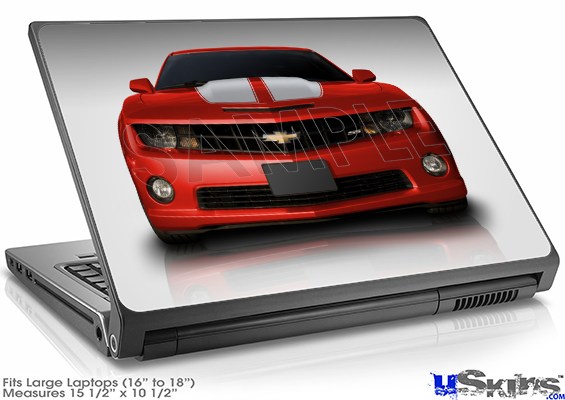 Laptop Skin (Large) - 2010 Chevy Camaro Victory Red - White Stripes