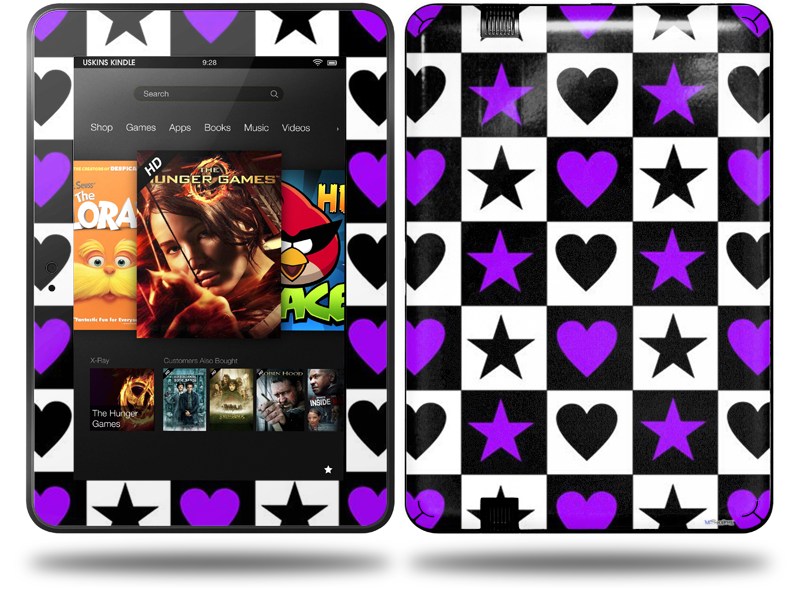 Purple Hearts And Stars Decal Style Skin fits Amazon Kindle Fire HD 8.9 inch