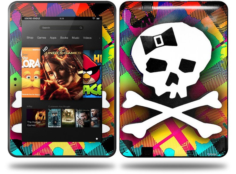 Rainbow Plaid Skull Decal Style Skin fits Amazon Kindle Fire HD 8.9 inch