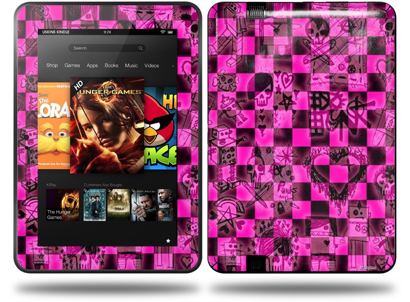 Pink Checkerboard Sketches Decal Style Skin fits Amazon Kindle Fire HD 8.9 inch
