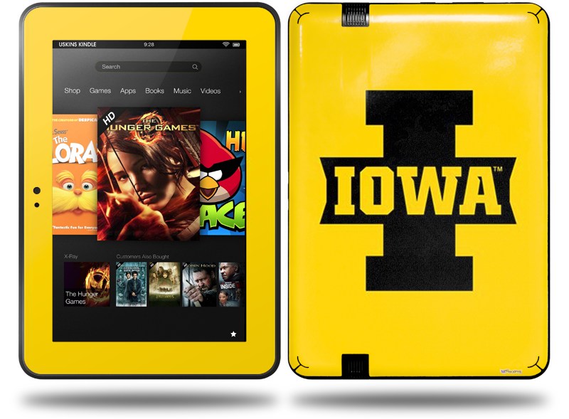 Iowa Hawkeyes 04 Black on Gold Decal Style Skin fits Amazon Kindle Fire HD 8.9 inch