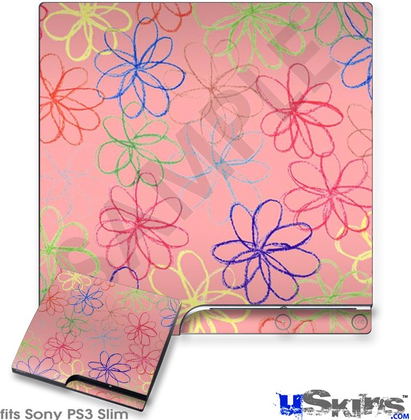Decal Skin compatible with Sony PS3 Slim Kearas Flowers on Pink