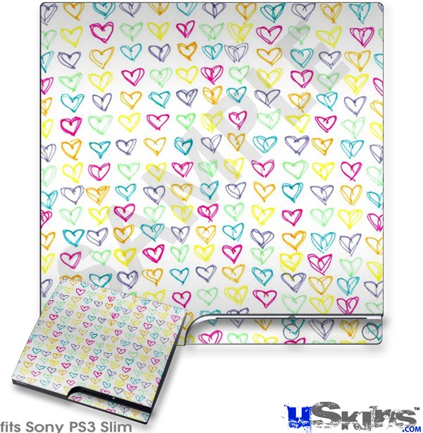 Decal Skin compatible with Sony PS3 Slim Kearas Hearts White